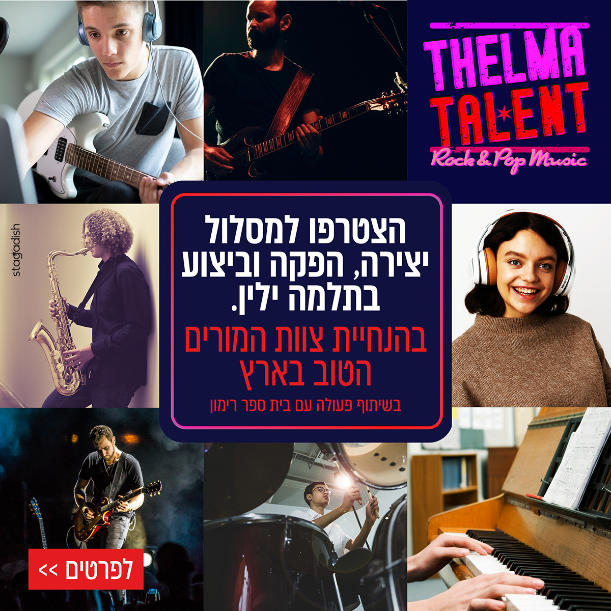 Thelma – Talent מיתוג בית ספר תלמה ילין קמפיין למגמת פופ רוק בבית ספר תלמה ילין קמפיין למגמת מחוננים במוסיקה קלאסית בבית ספר תלמה ילין
